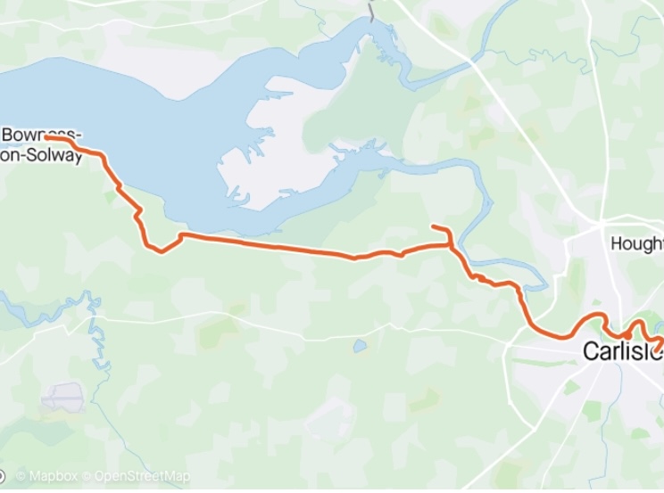 Morning came and I got ready to leave, I packed my bag and got ready to head out. I left one bag with the hostess of the hotel I was staying at, I didn’t want the bag transport company to take my bag to the hotel I was supposed to end at because I had changed my schedule. The hostess agreed to hold onto it until I returned from the last part of the day. I took off on the trail, following it around the river in Carlisle. I arrived at the Sands Centre near the centre of Carlise where I met Ash and Stephen again. We took off from there and started the walk to Bowness-on-Solway. The weather was different than it had been all week. A layer of lite fog had moved in and the air was a bit misty.
